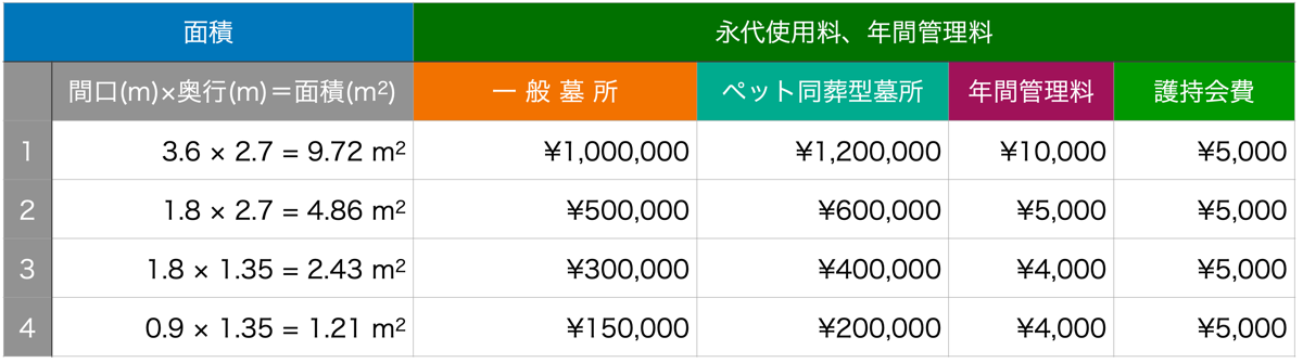 - 墓石工事代は含まれません。建立の際は、当山提携石材店とお話をしてご契約ください。